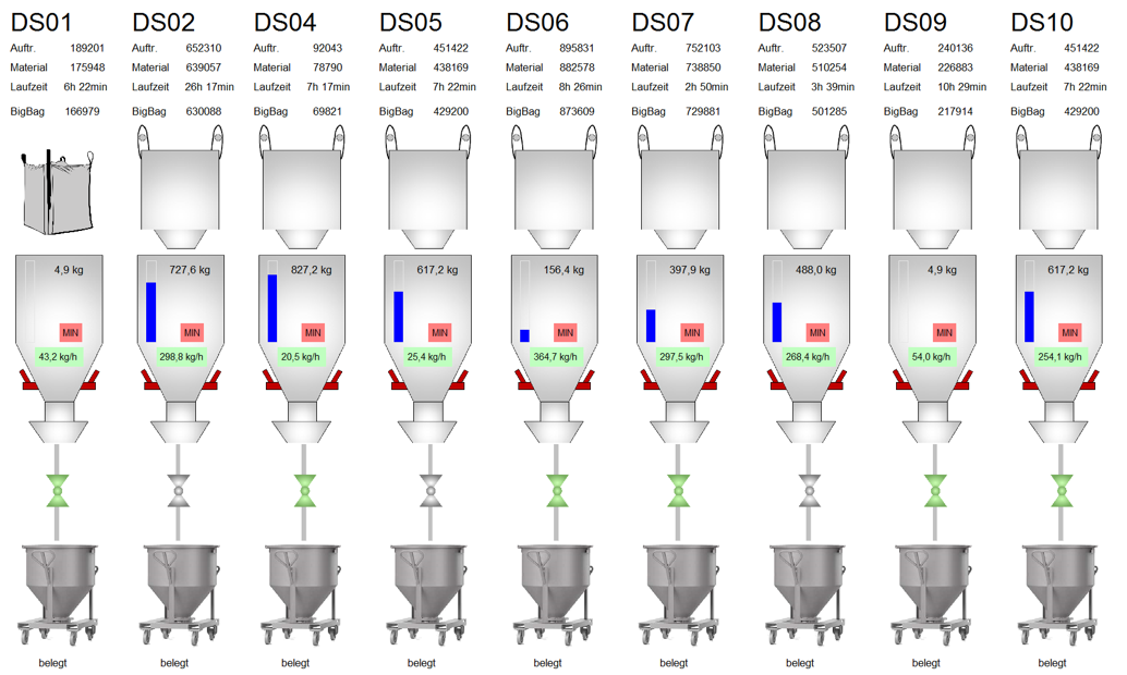 - Abstrakte Darstellung von Maschinendaten (z.B. Ampelfunktion für Qualität, Leistung oder Verbrauch einer Maschine)