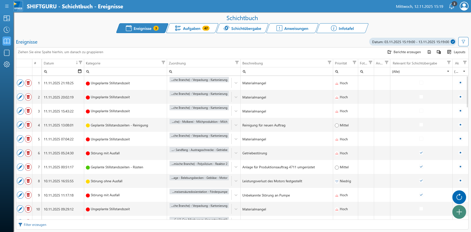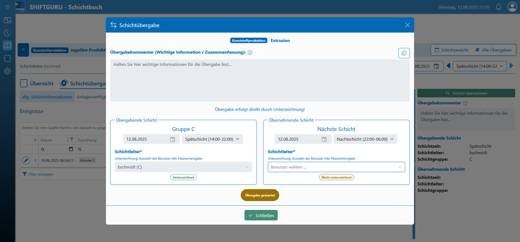 Dokumentation der Schichtereignisse